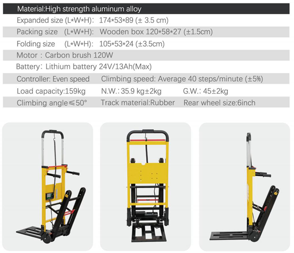 简介:电动爬楼机可以帮助操作人员轻松地将重物安全快捷的上下楼梯。大大提高了爬楼搬运效率和减少人力成本。被广泛应用于家电、饮料酒水、家具等货物和设备的上下楼搬运。